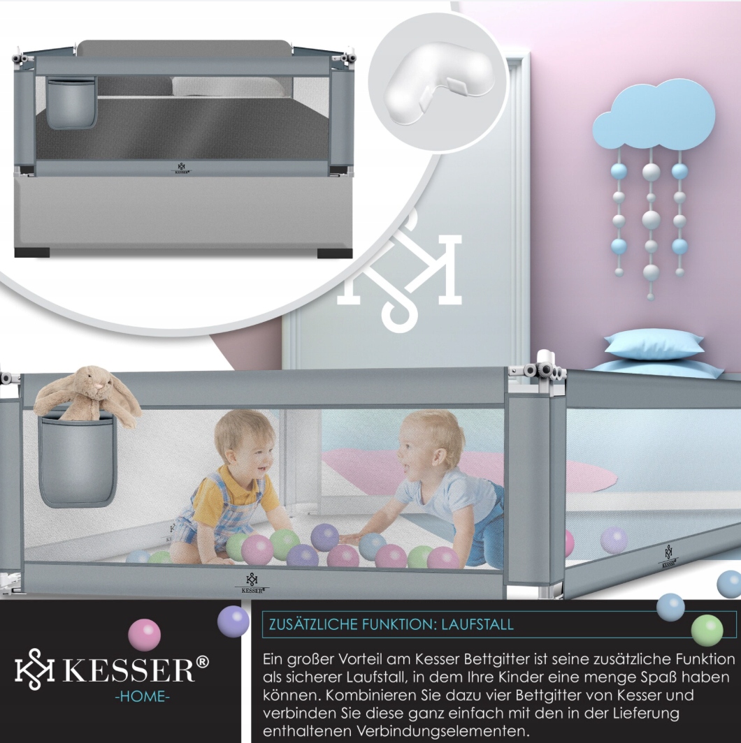 Większość małych dzieci śpi bardzo niespokojnie w nocy. Gdy dzieci dorosną z wieku dziecięcego, nasza siatka ochronna łóżka jest świetną alternatywą dla konwencjonalnych łóżeczek. Przymocuj poręcze łóżka dziecięcego do boku normalnego łóżka. Nasze kratki bezpieczeństwa zapobiegają wypadnięciu dziecka, a tym samym chronią je przed obrażeniami. Nasze kraty do spania są całkowicie elastyczne i dlatego idealnie nadają się do podróży, ponieważ wymagają mniej miejsca niż konwencjonalne łóżko podróżne.