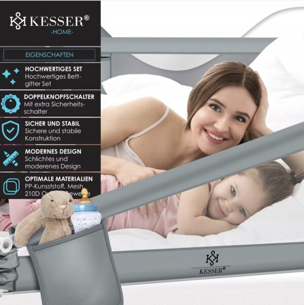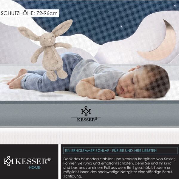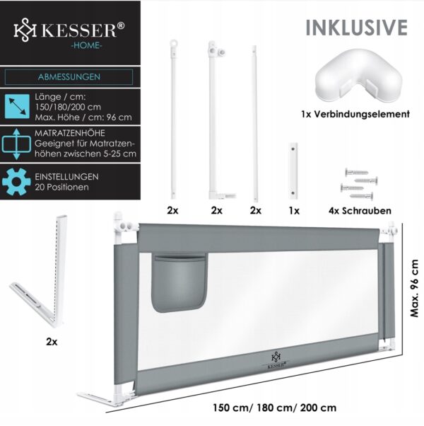 Barierka ochronna na łóżko marki KESSER to niezbędny element dla bezpieczeństwa użytkowników łóżka. Dzięki wysokości 96 cm skutecznie chroni przed upadkiem, co czyni go idealnym rozwiązaniem zarówno do użytku domowego, jak i w placówkach medycznych.