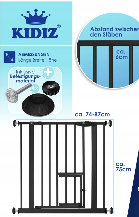 ✅ Nasza bramka ochronna KIDIZ zapewnia niezbędne zabezpieczenie, uniemożliwiając dzieciom dostęp do schodów. Dzięki bezpiecznemu zamknięciu, maluchy nie mogą przejść, podczas gdy dorośli mogą łatwo otworzyć bramkę bez trudu.