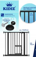 KIDIZ kratka do drzwi kratka barierowa kratka schodowa kratka dla dzieci | z drzwiami dla psów i kotów, zwierząt domowych | bez wiercenia | rozszerzalna