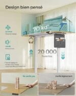 Przemyślana organizacja przestrzeni obejmuje kieszeń na dokumenty, haczyki na torby oraz otwory na kable, co pomaga utrzymać porządek i lepszą koncentrację podczas pracy. Stabilna stalowa konstrukcja zapewnia trwałość, a cicha praca silnika (poniżej 50 dB) nie zakłóca codziennych obowiązków.
