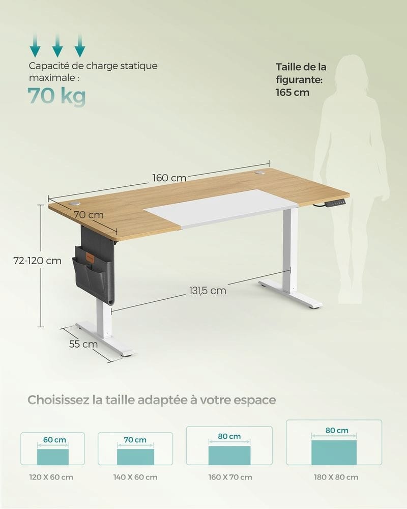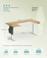 Biurko elektryczne regulowane 160×70 sit stand 4 pamięci SONGMICS