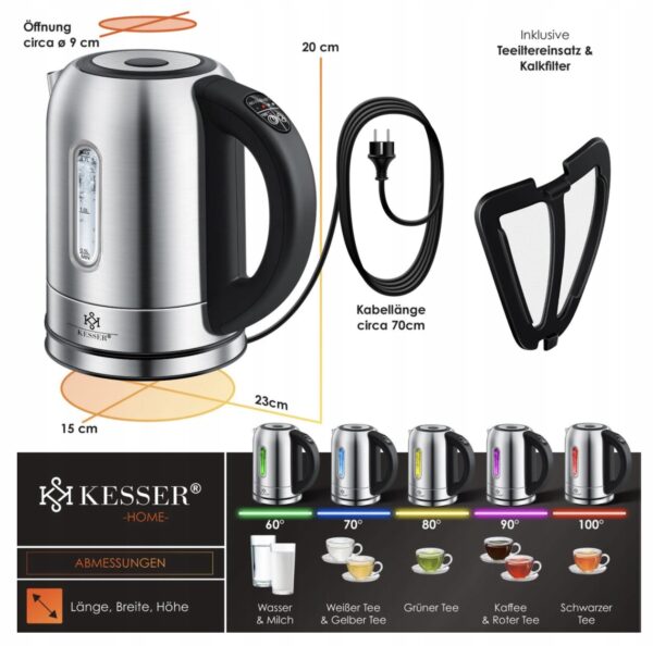 KESSER Czajnik elektryczny 2200W z regulacją temperatury 60–100°C i funkcją podtrzymywania ciepła