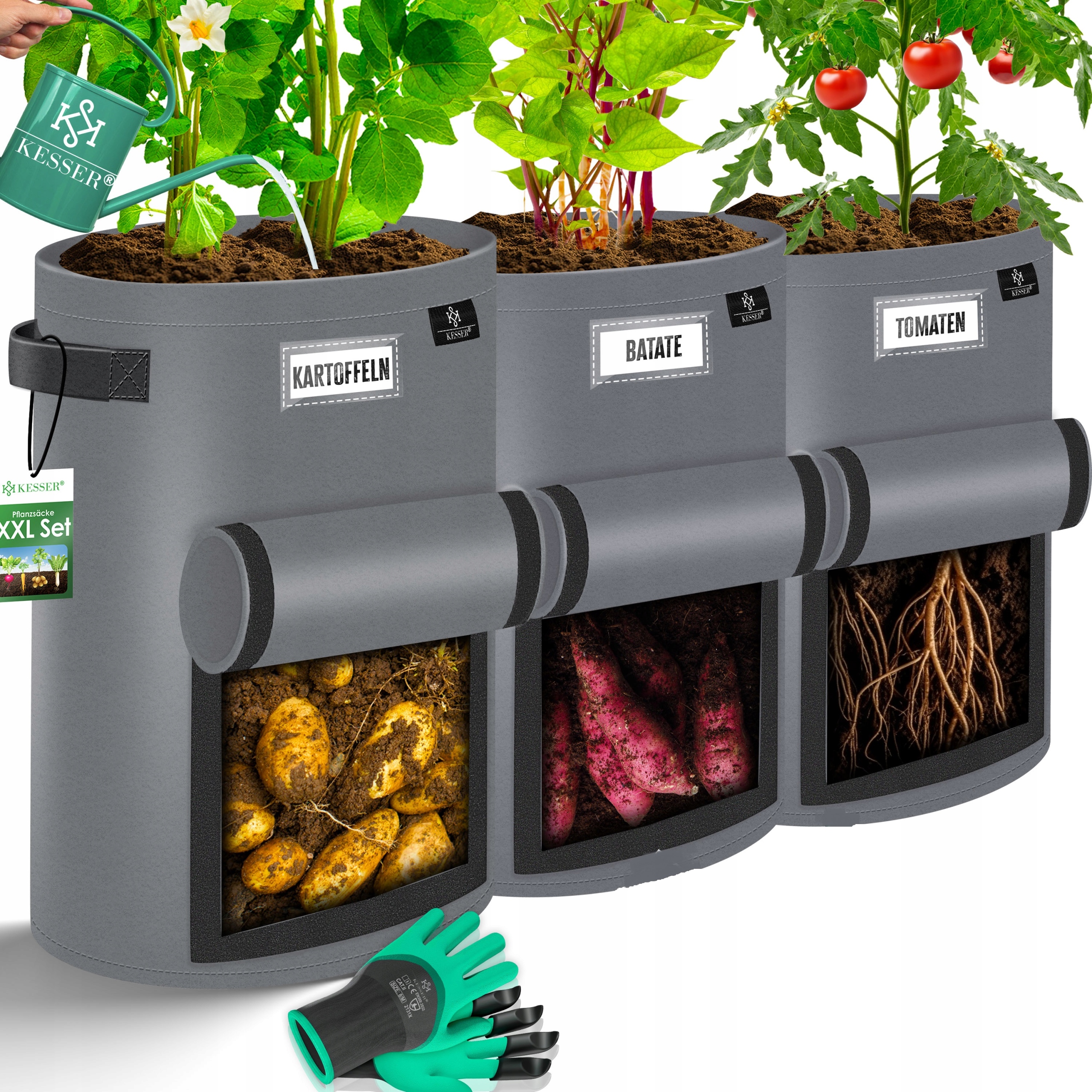 Doniczki z włókna szklanego szare KESSER 30 cm x 30 x 35 cm 3 sztuki