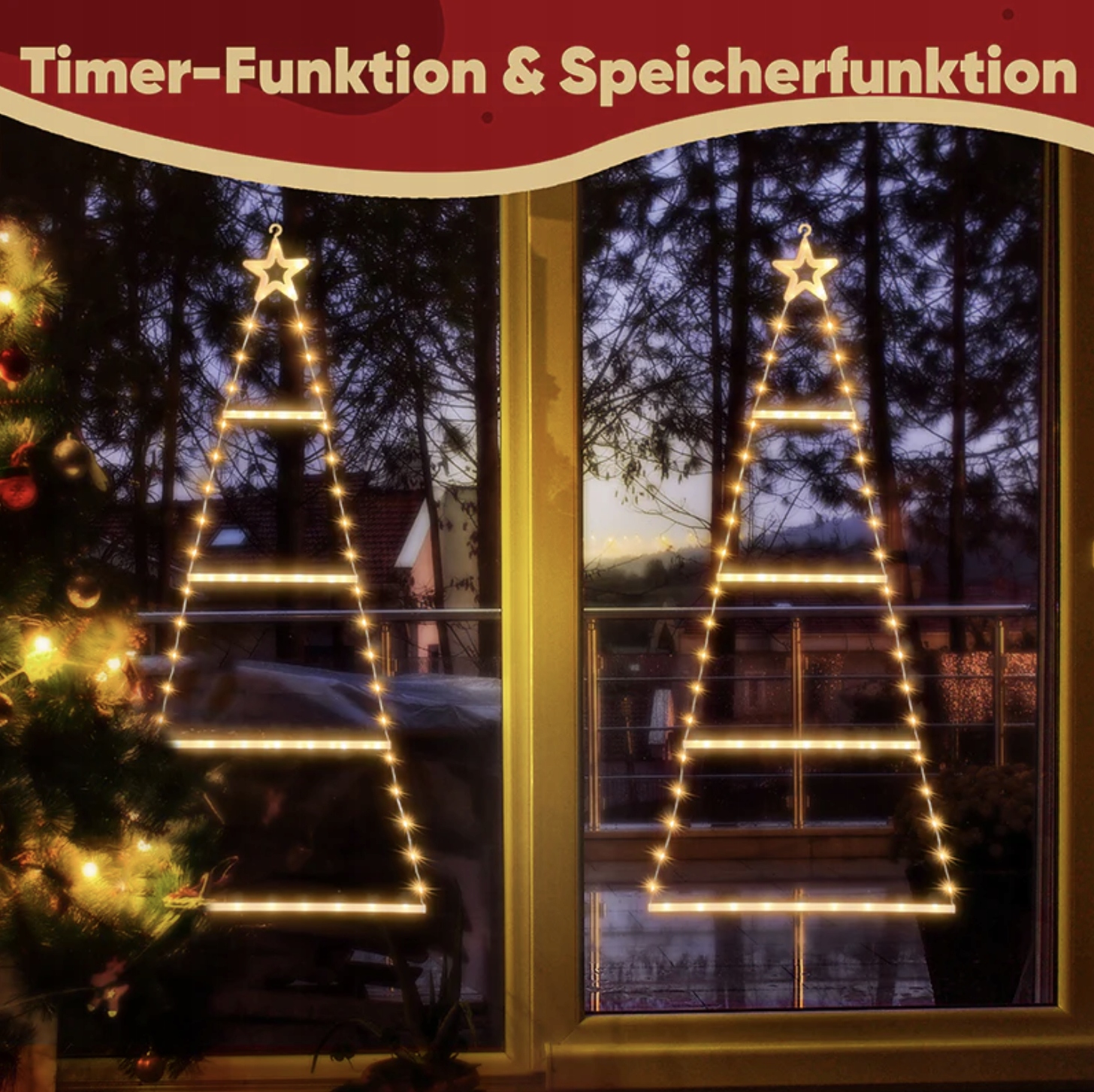 Drabina Mikołaja z gwiazdką 1m LED Choinka 70 diod LED Ciepły biały Salcar – 2 sztuki