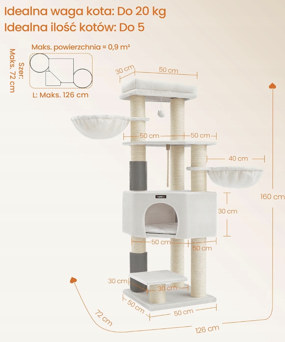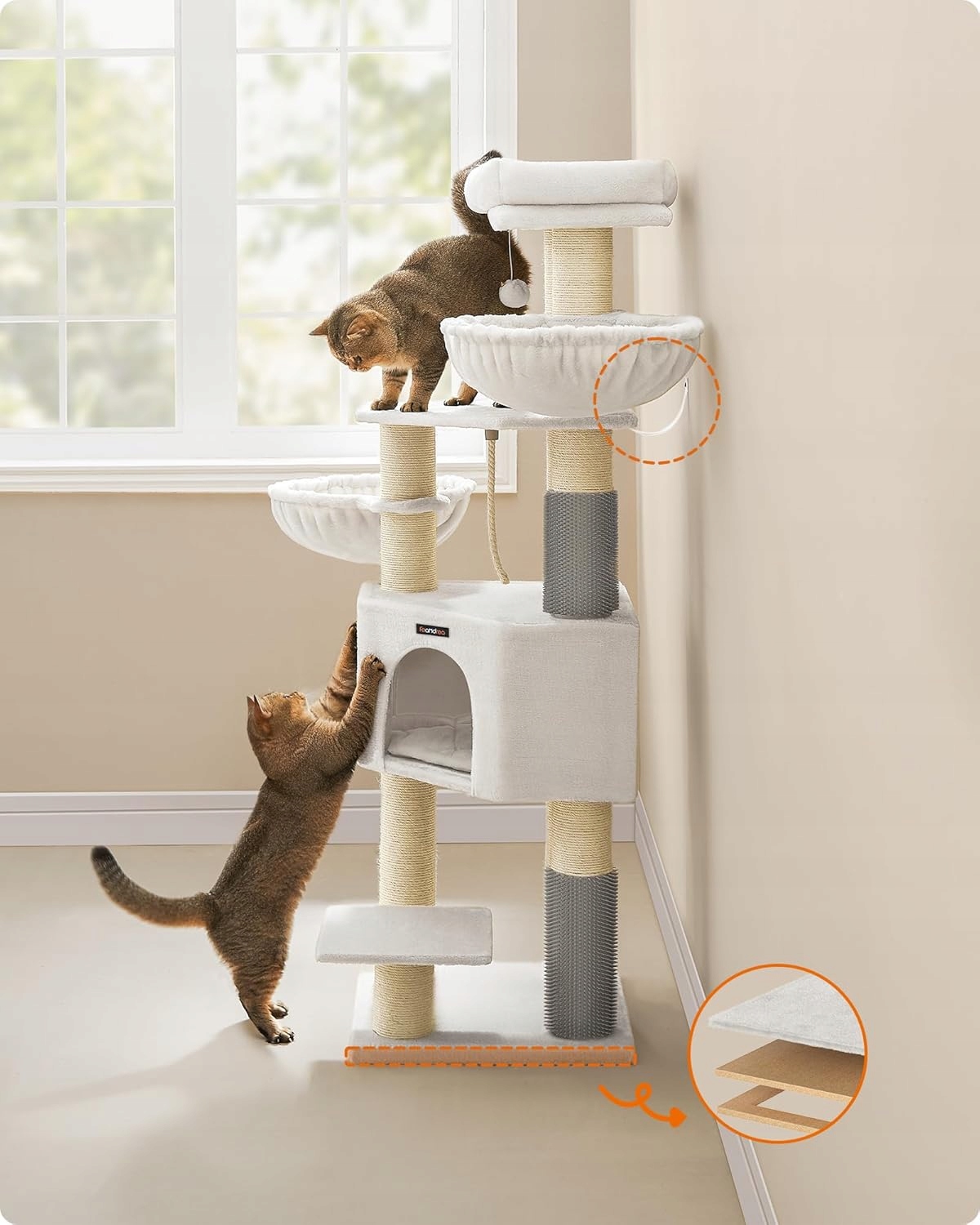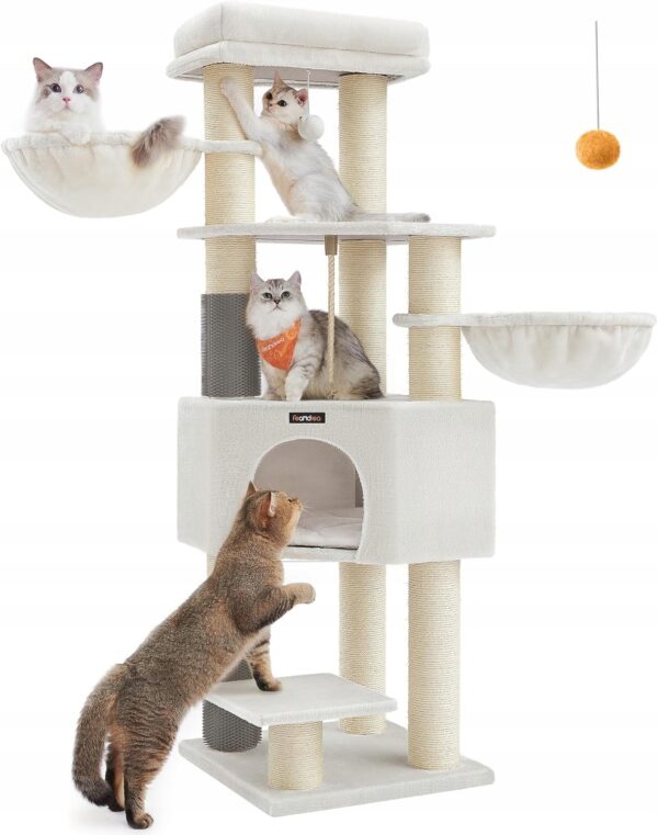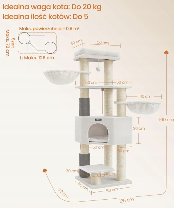 Drapak dla kota 160 cm duży stabilny z legowiskiem i hamakiem Feandrea