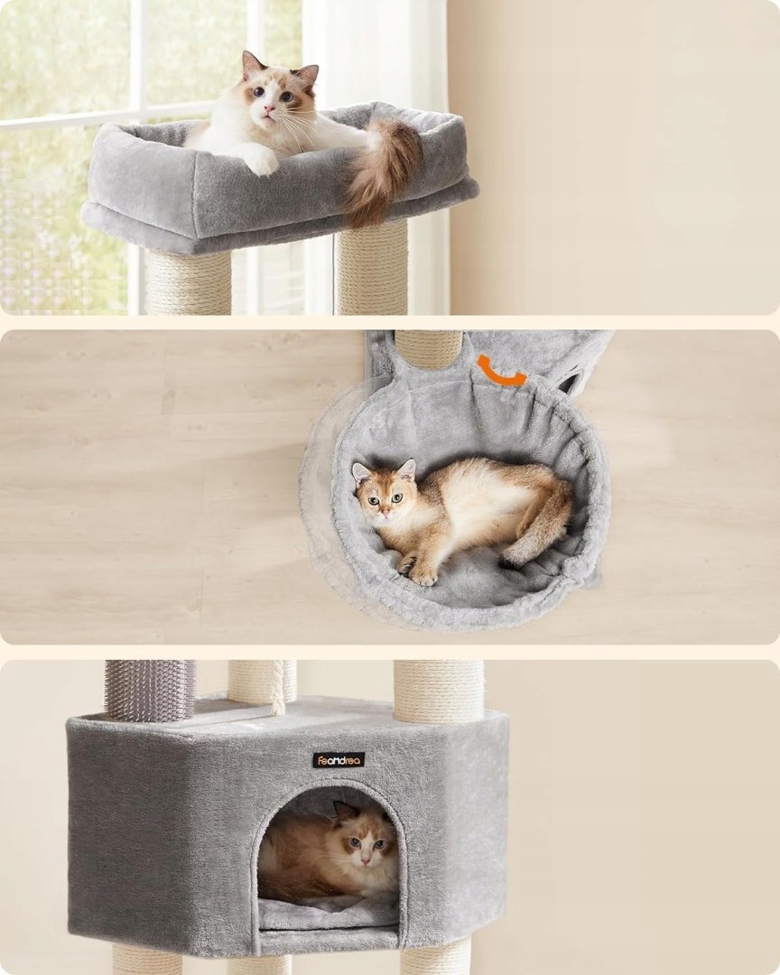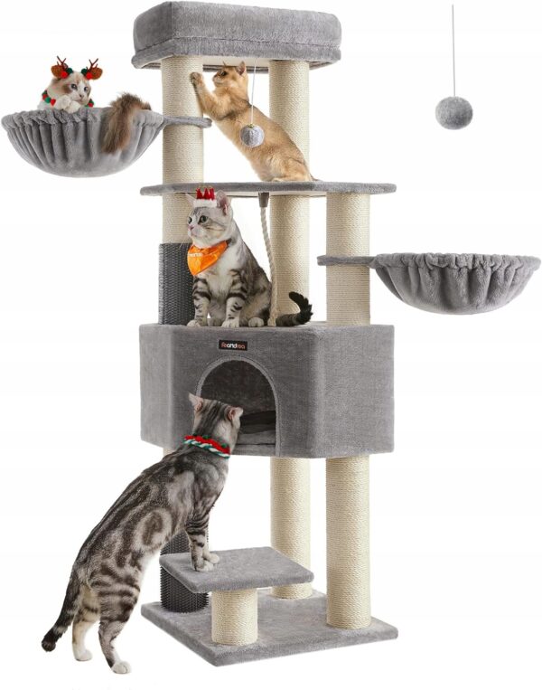 Drapak dla kota 160 cm duży z legowiskami i budką Feandrea