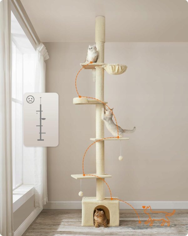Drapak dla kota sufitowy 231-291 cm XXL beżowy Feandrea