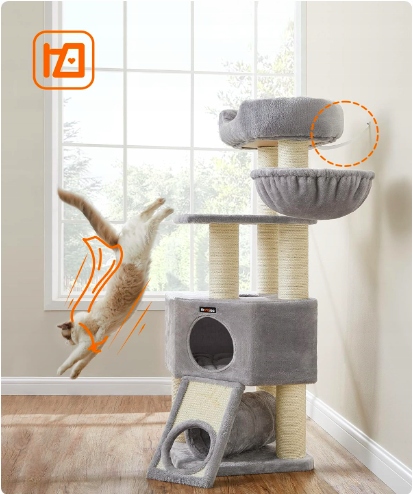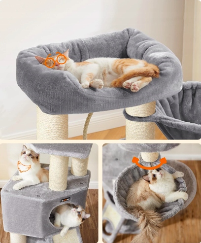 Wielopoziomowy luksusowy drapak FEANDREA LUXURY 141 cm zapewnia Twoim kotom zabawę, drapanie i relaks w jednym! Idealny dla wielu kotów, z tunelem, dużym domkiem, kubełkową leżanką i luksusowym legowiskiem. Stabilna konstrukcja z 8 słupami sizalowymi chroni meble, a miękkie pluszowe powierzchnie zapewniają komfort.