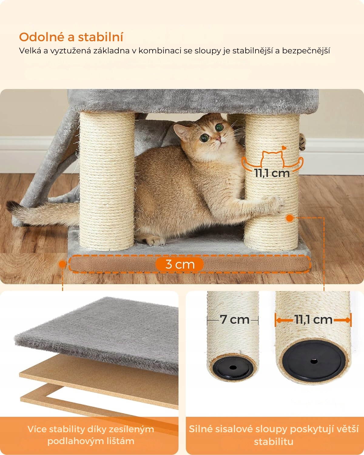 ✅ Wytrzymałe słupy do drapania – 8 słupów o średnicy ~11,1 cm pokrytych sizalem
