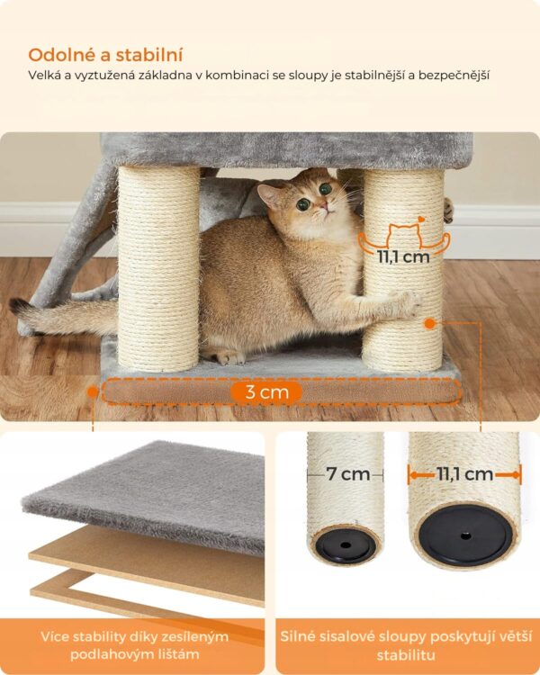Twój kot pokocha wspinaczkę, drapanie i obserwowanie otoczenia z wysokości. Drapak jest odpowiedni dla kotów małych, dużych i starszych, zapewniając im komfort i zabawę nawet, gdy Cię nie ma.