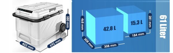 Lodówka kompresorowa KESSER o pojemności 61 litrów to niezawodne i wszechstronne urządzenie chłodzące, które doskonale sprawdza się podczas wyjazdów kempingowych, w podróży samochodowej, na łódce czy nawet w domu. Dzięki dużej pojemności i zaawansowanym funkcjom technologicznym, lodówka ta zapewnia maksymalny komfort użytkowania w każdych warunkach.