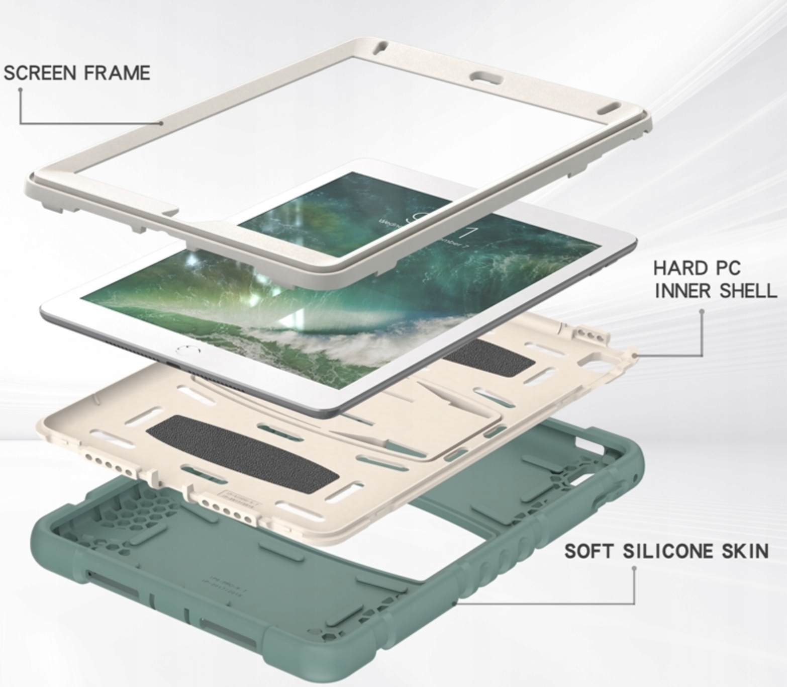 Trójwarstwowa konstrukcja – etui składa się z twardego poliwęglanowego (PC) wnętrza, silikonowej osłony zewnętrznej oraz ramki zabezpieczającej ekran, co zapewnia solidną ochronę przed upadkami i uderzeniami.