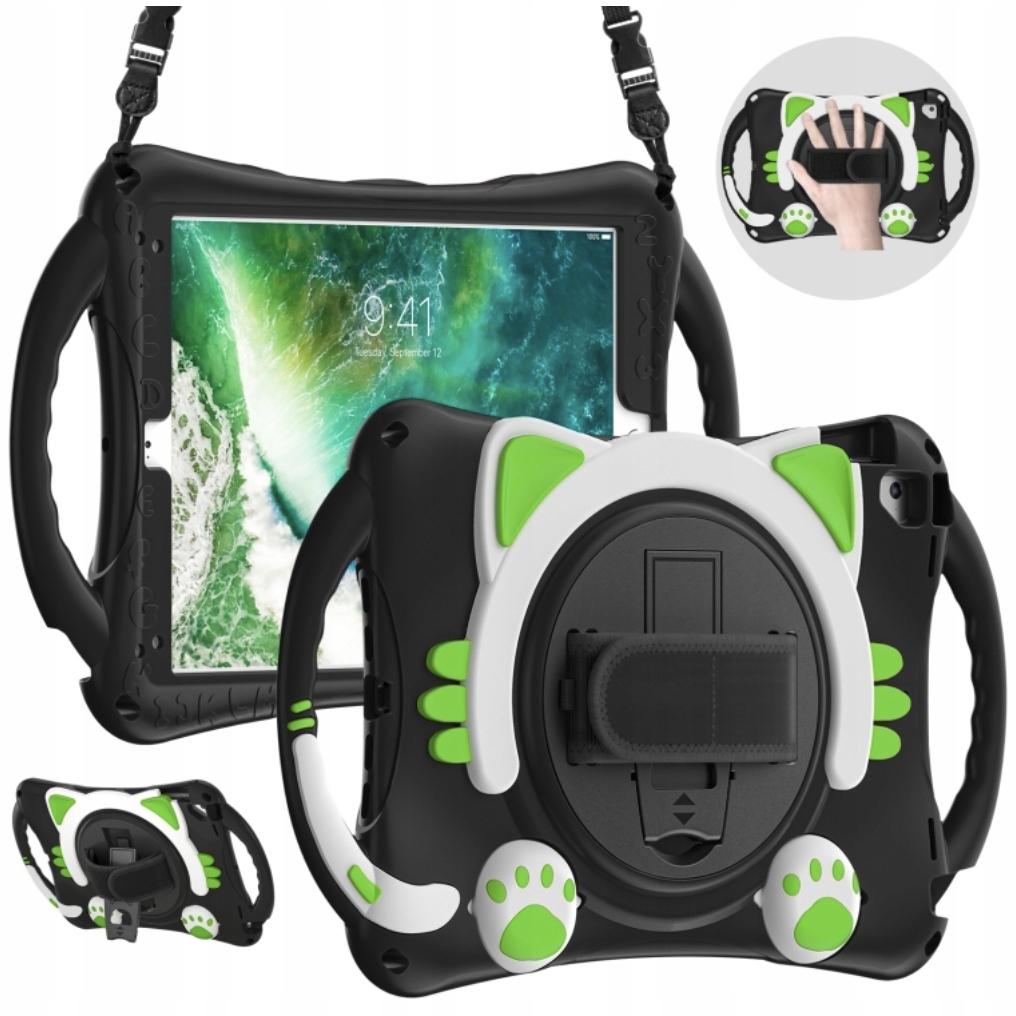 Etui case na tablet iPad 9.7 2018 / 2017 / Air / Air 2 / Pro 9.7 kotek czarny zielony