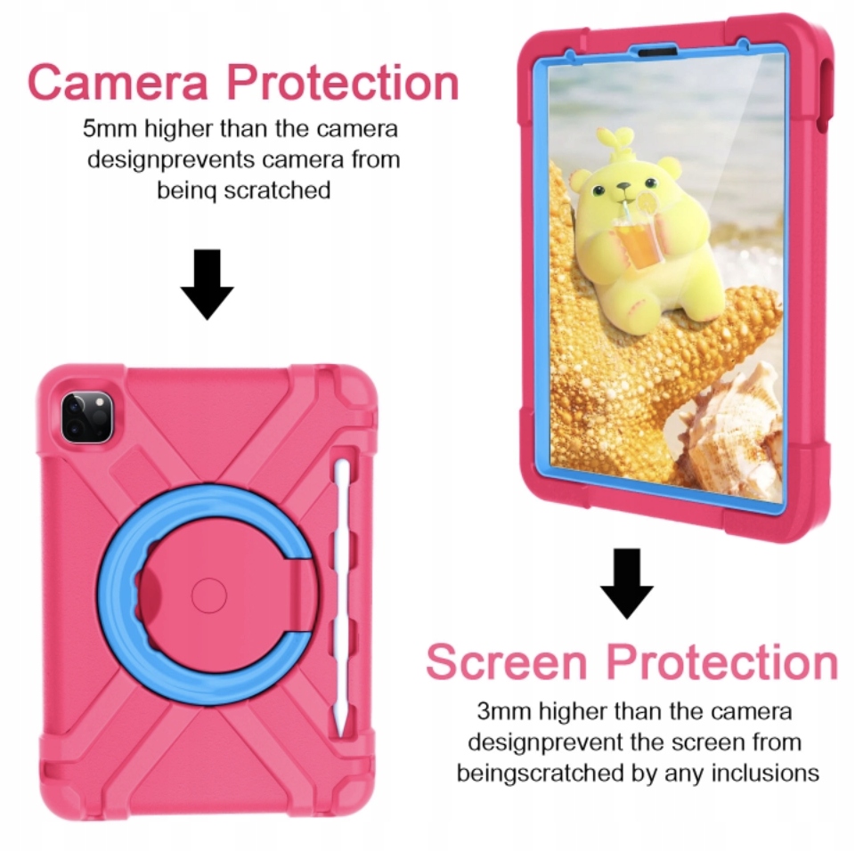 Etui wyposażone jest w praktyczny uchwyt obrotowy 360°, który umożliwia wygodne ustawienie tabletu w pozycji poziomej lub pionowej — idealne do oglądania filmów, czytania, grania czy przeglądania internetu.