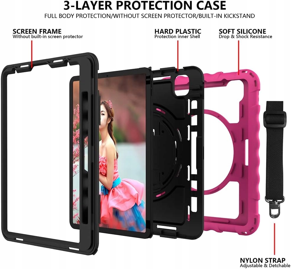 Etui Obudowa Case na Tablet iPad Air 5/Air 4/Pro 11″ z Paskiem Pancerny Czarny różowy