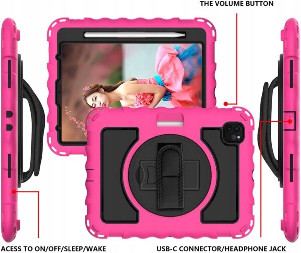 Etui Obudowa Case na Tablet iPad Air 5/Air 4/Pro 11″ z Paskiem Pancerny Czarny różowy