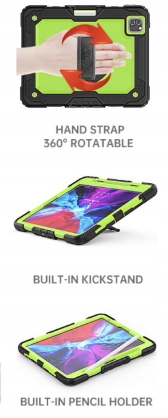 Etui Obudowa Case na Tablet iPad Air 5/Air 4/Pro 11″ z Paskiem Pancerny Czarny zielony