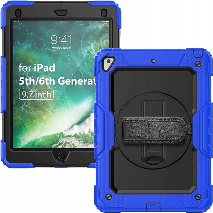 Etui Case na Tablet iPad 6/5/Air 2/Pro 9.7" z Paskiem Pancerny Niebieski