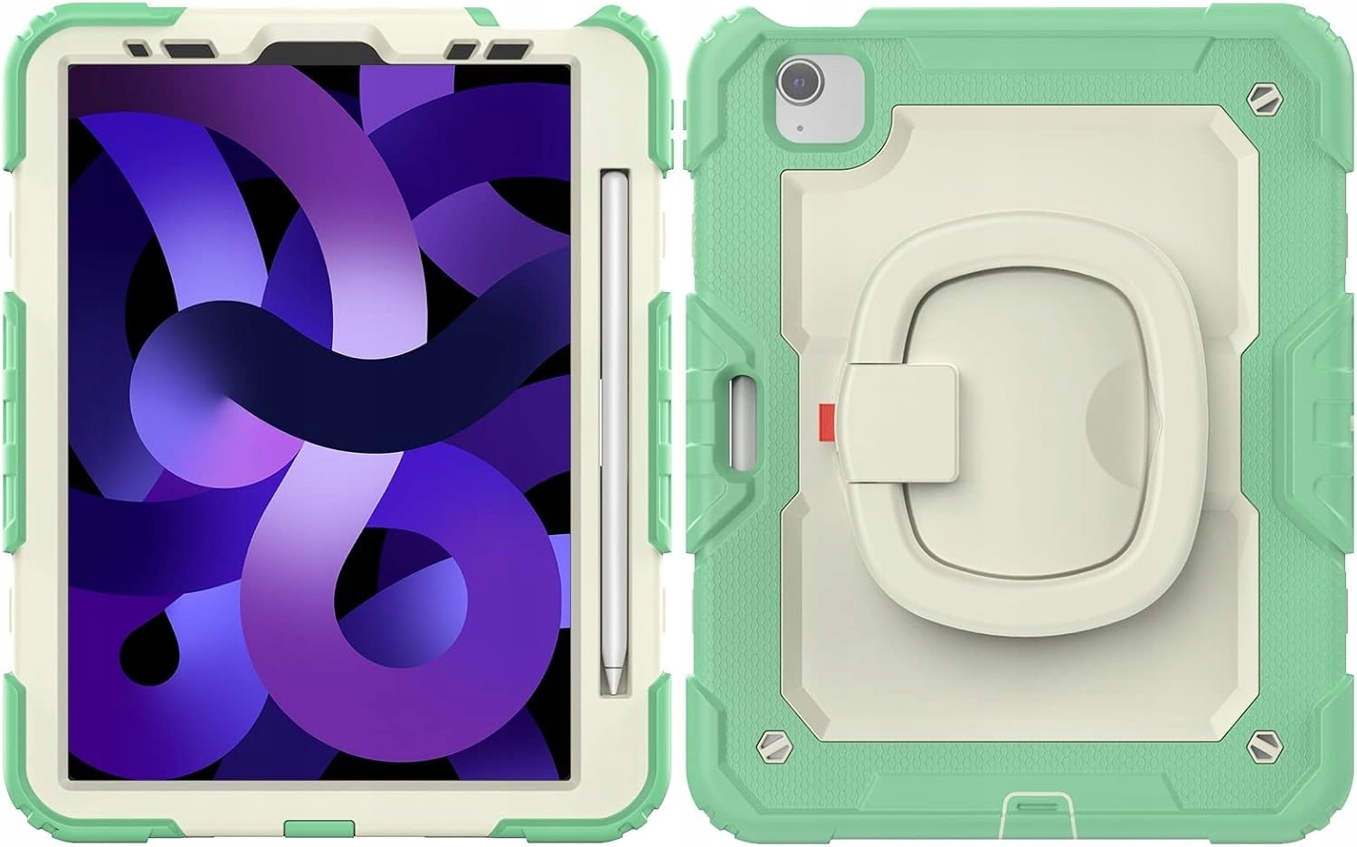 Obrotowy o 360° i składany o 180° uchwyt może służyć jako rączka do przenoszenia lub podstawka. Umożliwia wygodne korzystanie z iPada w kuchni, łazience, sypialni czy podczas pracy. Idealne dla kobiet, dzieci, mam czy osób często korzystających z urządzenia w różnych pomieszczeniach.