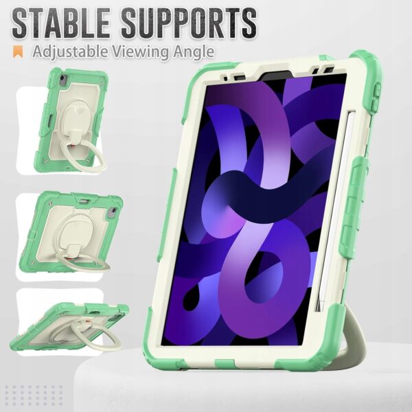 Obrotowy o 360° i składany o 180° uchwyt może służyć jako rączka do przenoszenia lub podstawka. Umożliwia wygodne korzystanie z iPada w kuchni, łazience, sypialni czy podczas pracy. Idealne dla kobiet, dzieci, mam czy osób często korzystających z urządzenia w różnych pomieszczeniach.
