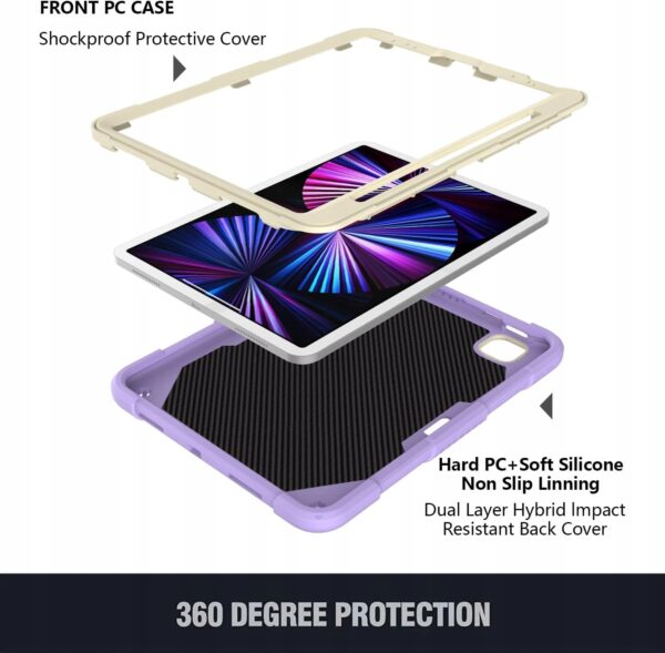 ✅ Wytrzymała konstrukcja odporna na wstrząsy: Etui na iPada wykonane z twardego PC i trwałego silikonu, 53-warstwowa struktura ochronna, zapewnia idealną ochronę, chroni Twój iPad przed przypadkowymi zarysowaniami, upadkami, uderzeniami i wstrząsami. (Uwaga: wbudowana ochrona ekranu nie jest dołączona).