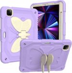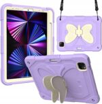 Etui na iPad Air 5/iPad Air 4 10,9 cala (2020/2022) z uchwytem na rysik, pełna osłona ochronna z podstawką motyla i paskiem na ramię, beżowo-fioletowe