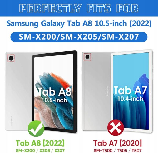 • Kompatybilność: Wytrzymałe etui na tablet jest kompatybilne wyłącznie z wersją Samsung Galaxy Tab A8 10,5 cala (2022) (SM-X200/X205/X207).
