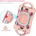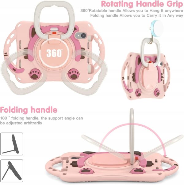 Wielofunkcyjna podpórka i uchwyt: Wbudowany obrotowy stół obrotowy o 360 stopni i składana podpórka, umożliwia regulację stojaka w celu uzyskania różnych kątów. Otwórz jako wygodny uchwyt do chwytania i przenoszenia. Uchwyty po obu stronach umożliwiają dzieciom łatwe i bezpieczne trzymanie tabletu.