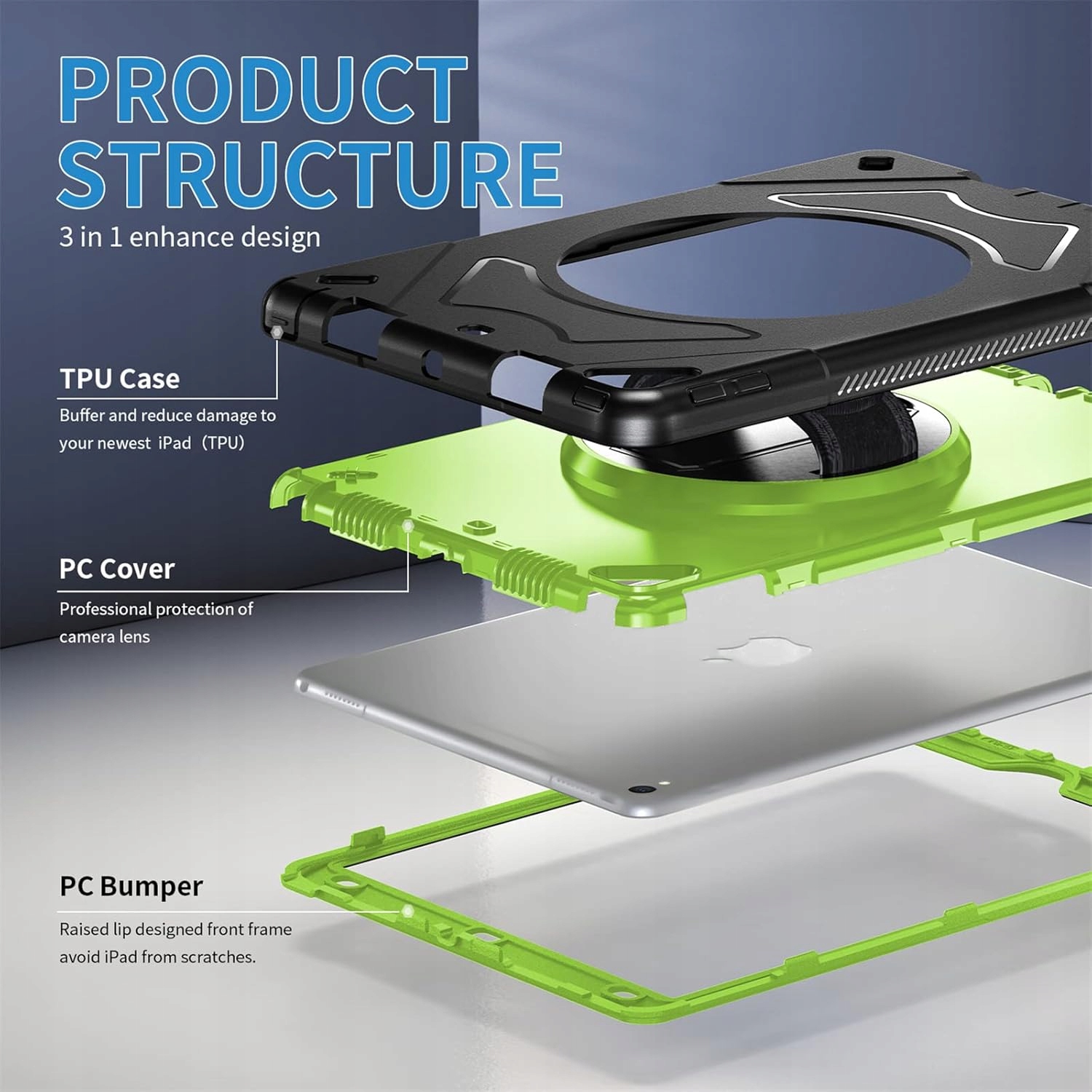 3-warstwowa ochrona: Zaawansowana konstrukcja 3 w 1 z wysokiej jakości przezroczystym PC i amortyzującym materiałem silikonowym zapewnia kompleksową ochronę tabletu, skutecznie zapobiega jego przypadkowemu upadkowi, wstrząsom, poślizgowi i zadrapaniom.