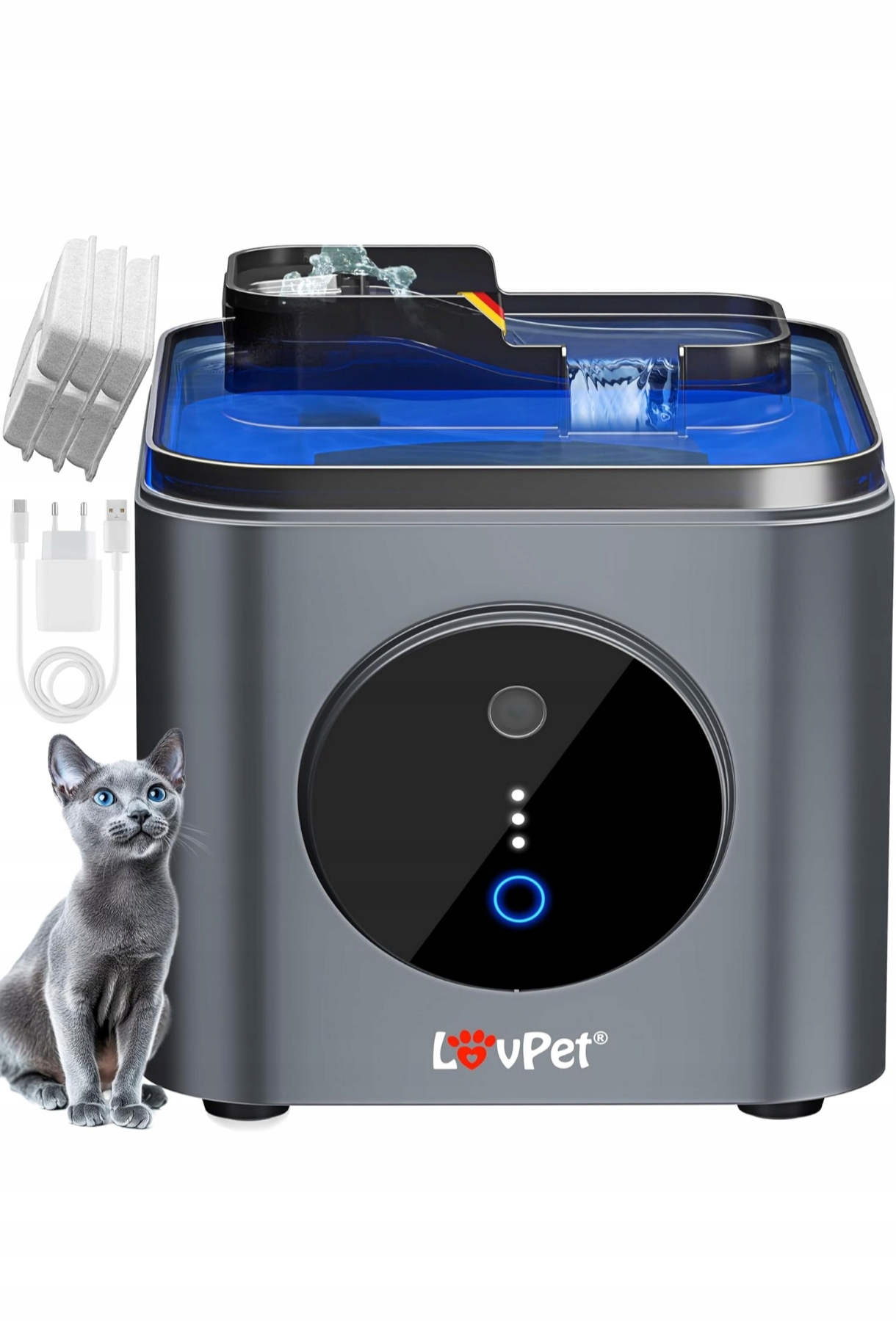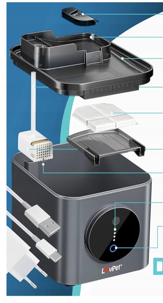 Fontanna dla kotów marki LOVPET® to nowoczesne rozwiązanie, które zapewnia zwierzętom stały dostęp do świeżej, filtrowanej wody. Dzięki pojemnemu zbiornikowi i inteligentnym funkcjom, urządzenie wspiera zdrowie kota, jednocześnie oferując wygodę dla właściciela.