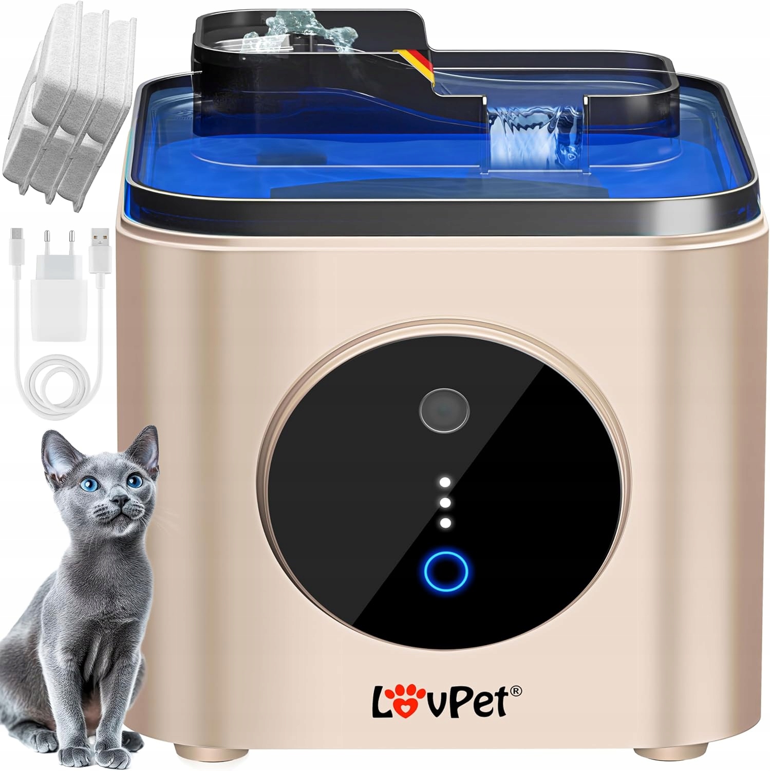Fontanna dla kotów marki LOVPET® to nowoczesne rozwiązanie, które zapewnia zwierzętom stały dostęp do świeżej, filtrowanej wody. Dzięki pojemnemu zbiornikowi i inteligentnym funkcjom, urządzenie wspiera zdrowie kota, jednocześnie oferując wygodę dla właściciela.