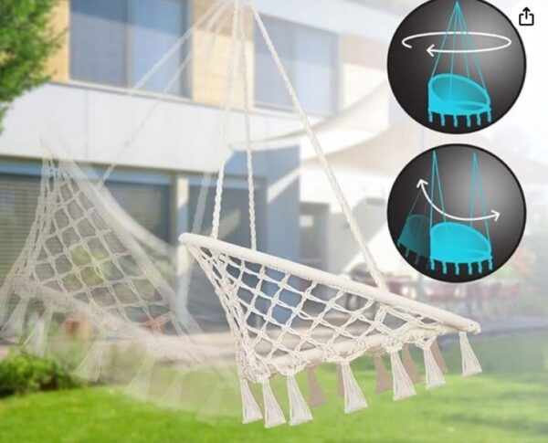 ✅ Fotel wiszący marki KESSER to połączenie komfortu, stylu i funkcjonalności. Wykonany z miękkiej bawełny oraz wytrzymałego poliestru, zapewnia wygodne miejsce do odpoczynku zarówno we wnętrzach, jak i na świeżym powietrzu. Idealnie sprawdzi się w ogrodzie, na balkonie, tarasie, kempingu, w altanie czy nawet w salonie lub ogrodzie zimowym.