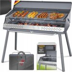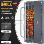 Bogaty zestaw akcesoriów w cenie W zestawie otrzymujesz duży ruszt do grillowania (66 × 25 cm), odporną na wysokie temperatury matę do grillowania z włókna szklanego (60 × 40 cm) oraz praktyczną torbę do przenoszenia (68 × 25 cm), która ułatwia transport i oszczędza miejsce podczas przechowywania.
