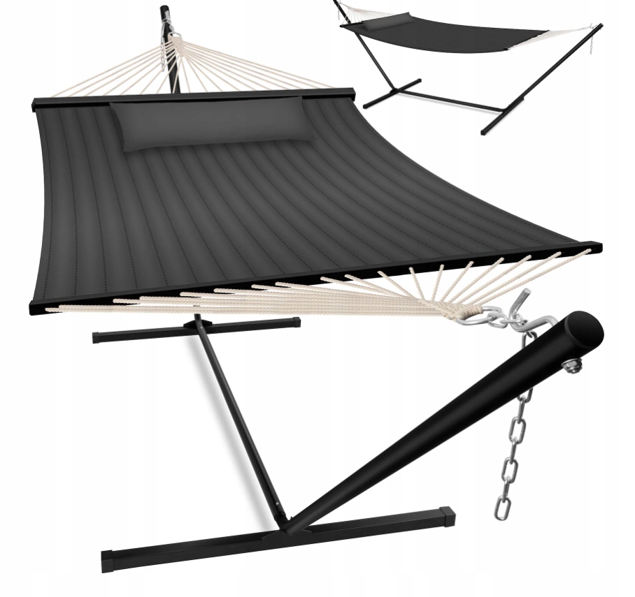 Stwórz swoją własną strefę relaksu w ogrodzie, na tarasie lub balkonie z hamakiem KESSER ze stelażem. To wygodne i stylowe rozwiązanie, które nie wymaga montażu między drzewami czy ścianami – dzięki solidnej stalowej ramie możesz ustawić hamak dokładnie tam, gdzie chcesz. Idealny do odpoczynku, czytania czy nawet krótkiej drzemki na świeżym powietrzu.