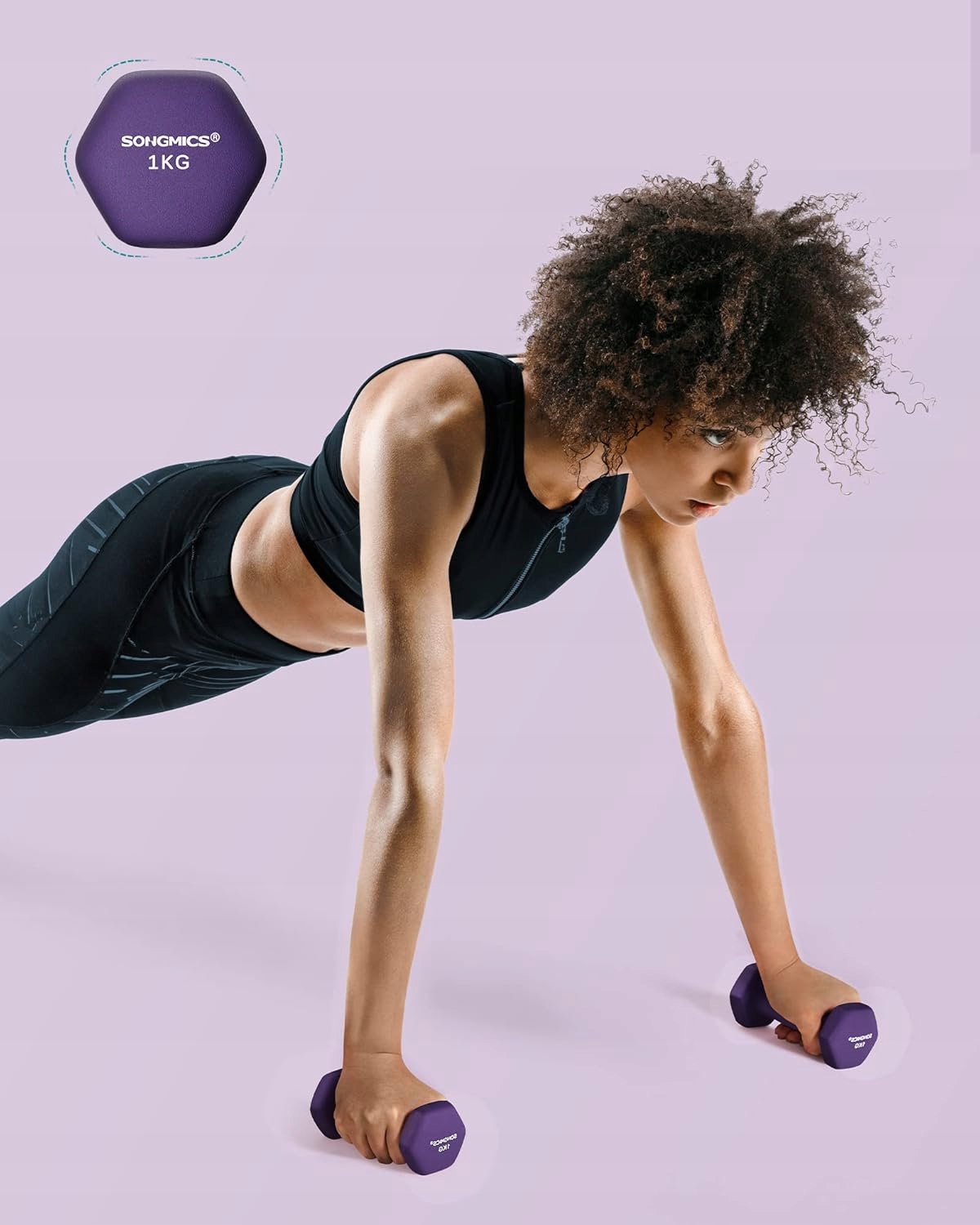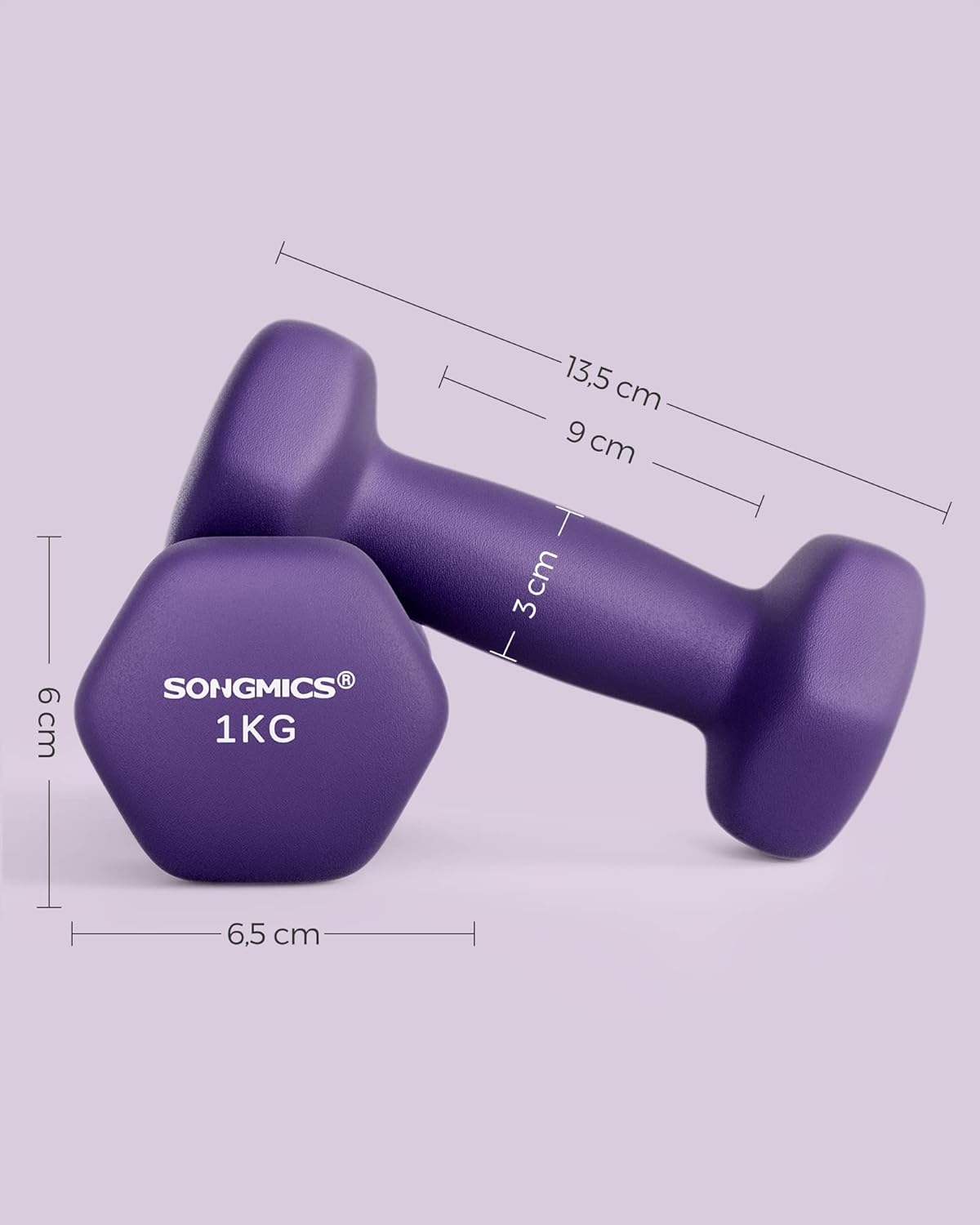 Hantle 2×1 kg neoprenowe heksagonalne fioletowe trening SONGMICS