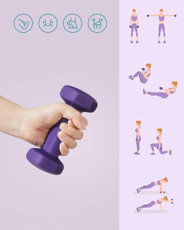 Hantle 2×1 kg neoprenowe heksagonalne fioletowe trening SONGMICS