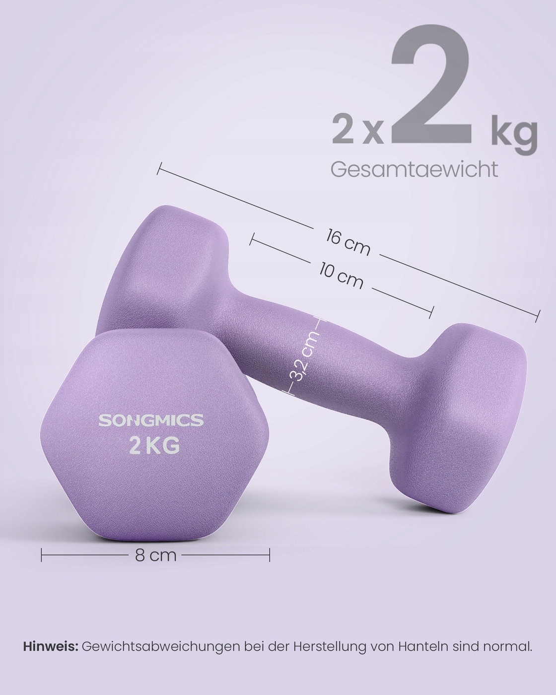 SONGMICS hantle neoprenowe sześciokątne 2 x 2 kg fitness do domu