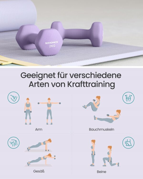 SONGMICS hantle neoprenowe sześciokątne 2 x 2 kg fitness do domu