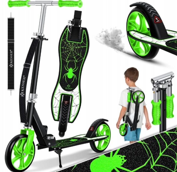 Hulajnoga dla dzieci Kesser Zielona pająk z antypoślizgową platformą