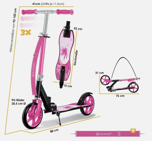 Hulajnoga KESSER to nie tylko świetna zabawa, ale także wygoda i bezpieczeństwo podczas codziennych przejażdżek. Dzięki lekkiej konstrukcji i możliwości składania, łatwo ją przechowywać i transportować.