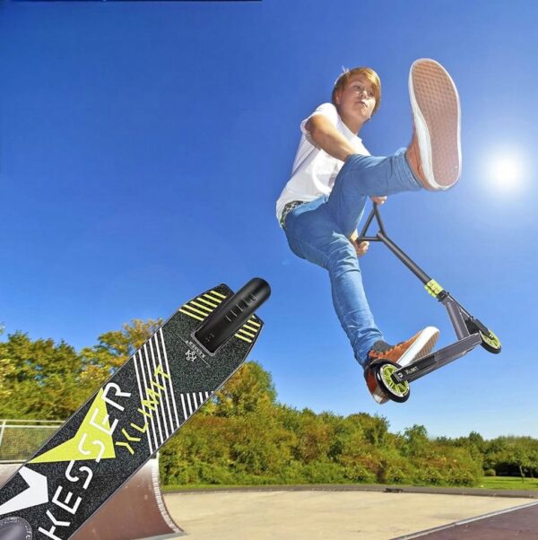Hulajnoga dostarczana jest częściowo zmontowana – wystarczy dokręcić 3 śruby, by w mniej niż 3 minuty była gotowa do jazdy. Nowoczesny, sportowy design w atrakcyjnych kolorach sprawia, że KESSER® X-Limit przyciąga wzrok w skateparku i na ulicy.