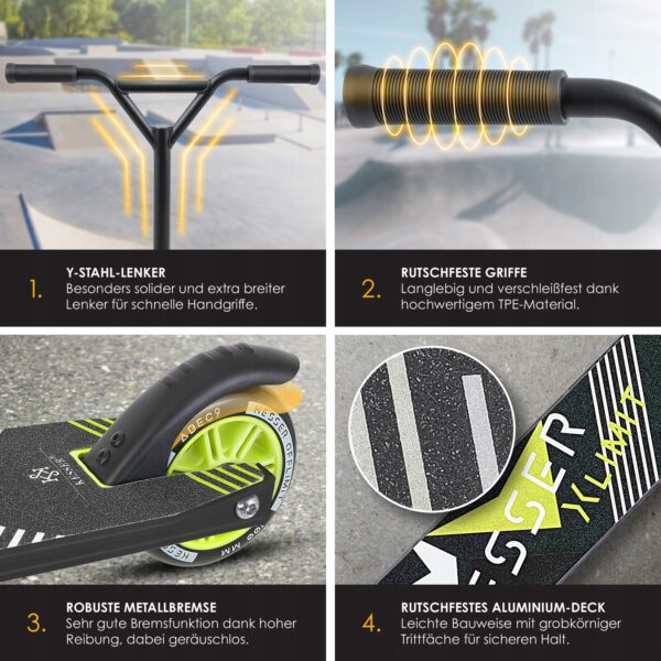 KESSER® X-Limit Stunt Scooter | Hulajnoga wyczynowa dla dzieci i dorosłych | 100 mm kółka PU | Aluminiowa rama | Do 100 kg