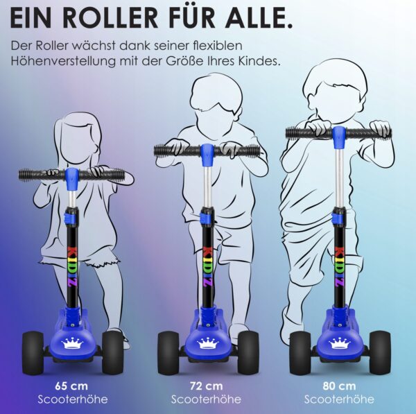 Hulajnoga „rośnie” razem z Twoim dzieckiem – regulacja wysokości kierownicy w zakresie 65-80 cm sprawia, że można ją łatwo dopasować do wzrostu dziecka. Regulacja odbywa się szybko i bezproblemowo dzięki plastikowemu zatrzaskowi.