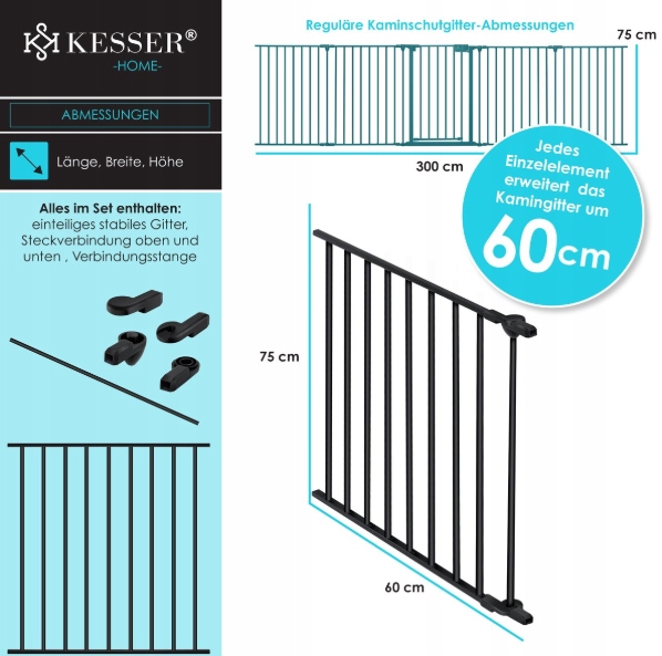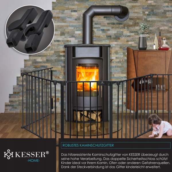 KESSER Bramka Zabezpieczająca Dla Dzieci Osłona Kominkowa Jednoelementowa Czarna