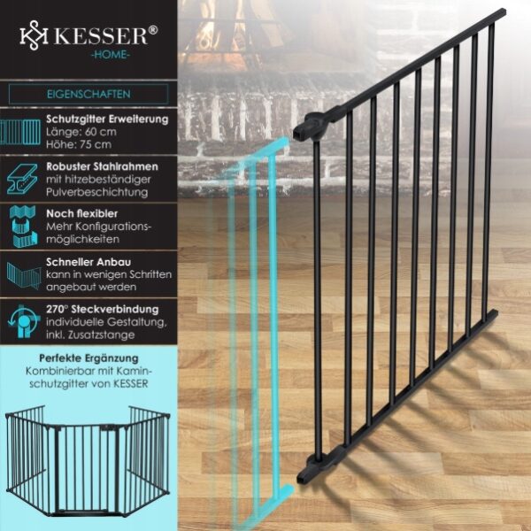 KESSER Bramka Zabezpieczająca Dla Dzieci Osłona Kominkowa Jednoelementowa Czarna
