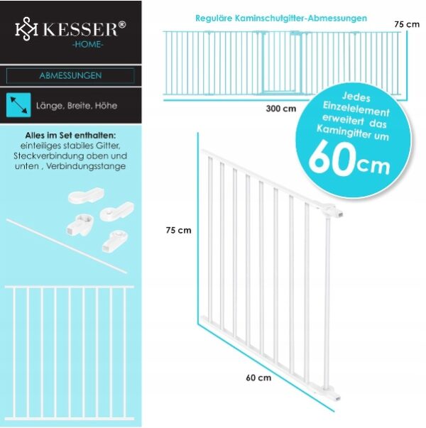 KESSER Bramka Zabezpieczająca Dla Dzieci Osłona Kominkowa Jednoelementowa Biała