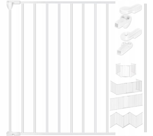 ✅ ROZSZERZENIE: Dzięki różnym możliwościom umieszczenia ta bramka dziecięca jest elastyczna i może być używana jako furtka, bramka na klatkę schodową lub kojec dla zwierząt domowych lub szczeniąt. Brama dostarczana jest z elementem ogrodzenia, 4 łącznikami, które można ze sobą łączyć oraz poprzeczką. Wewnętrzny zębnik umożliwia kąt do 270°, co pozwala na umieszczenie łączników na słupku, a następnie na następnym płocie.