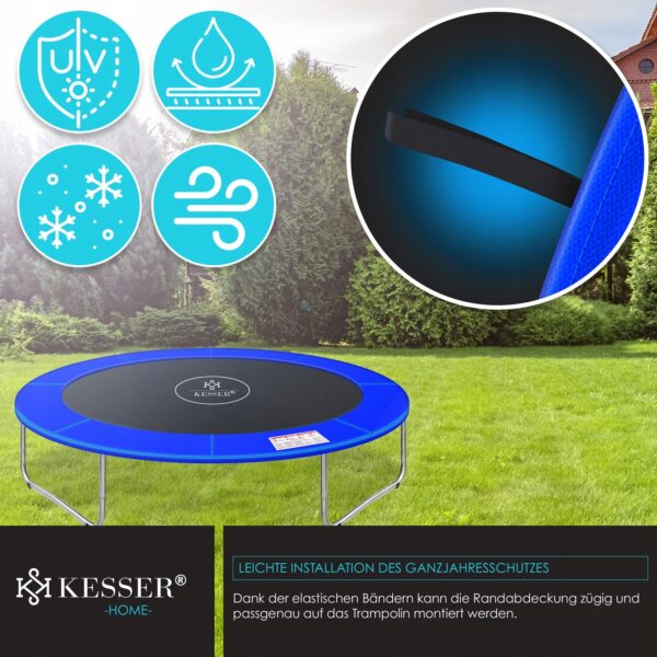 Wysokiej jakości osłona krawędzi KESSER do trampoliny ogrodowej zapewnia bezpieczną ochronę.