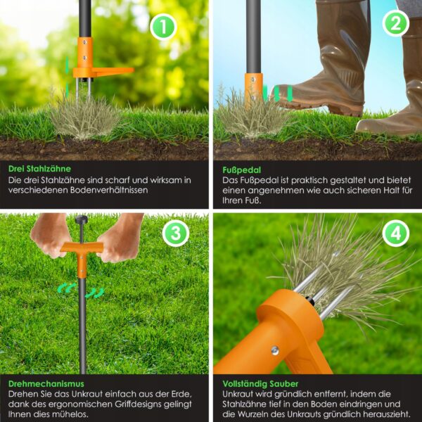 ✅ Skuteczne usuwanie chwastów – trzy wytrzymałe stalowe zęby (aż 7 cm długości) pozwalają dokładnie wyciągnąć chwasty z korzeniami, nawet z twardej gleby.